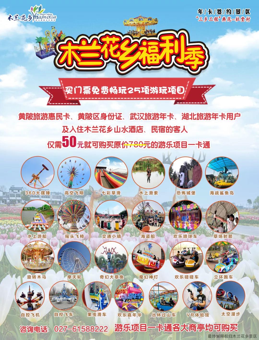 賞完花海,縱情游樂 木蘭花鄉(xiāng)福利季震撼來襲 買門票免費暢玩25項游樂項目 黃陂惠民卡(身份證)、武漢賞花游惠民活動預(yù)約用戶、湖北及大武漢年卡用戶 僅需50元,就可暢玩 價值780元的25項游樂項目